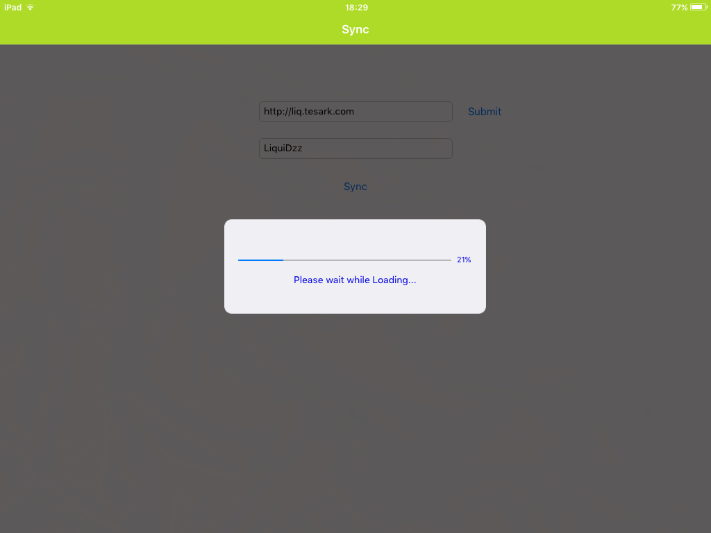 This screen depicts the syncing process that is ongoing between the admin to the tablet.